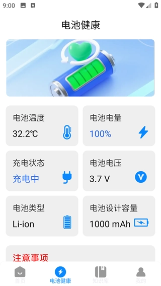 4、在下方的电池健康板块里,也可以查看设备的电池健康状况,比如电池温度、电池电量等信息。