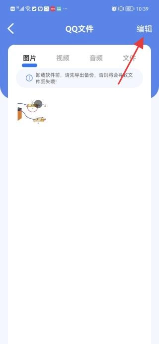 4、完成备份后,可返回首页,点击备份记录下方的“我的备份QQ”,随后在QQ文件界面点击右上角的编辑按钮进入相关页面。
