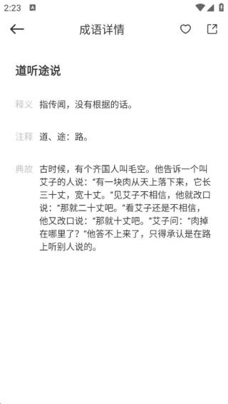 2、点击“今日学习成语”,即可查看该成语的详细内容,包括释义、注释、典故等信息。