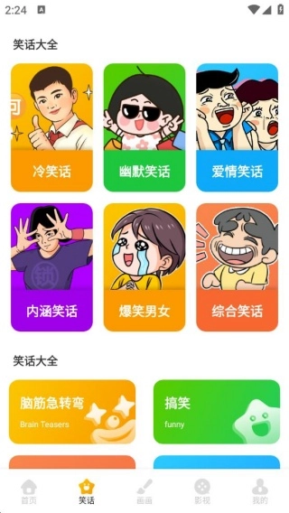 3、进入笑话界面后,冷笑话、幽默笑话、爱情笑话等各类内容一应俱全,能让你持续收获欢乐。