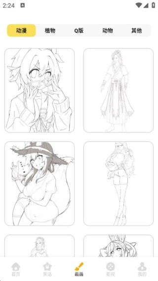 4、点击画画功能,各类绘画模板可随意挑选,使你的填色操作更具自由度,涵盖动漫、植物、Q版等多种分类。