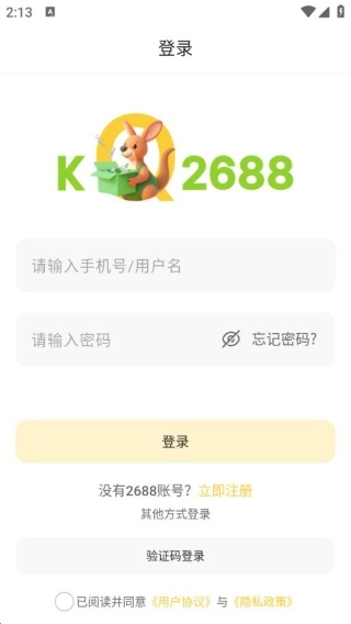 3、登录方式多样,除了用户名密码登录外,还能选择验证码登录,登录后可直接进入购物界面。