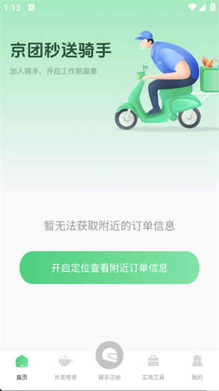 2. 在主页面的下方区域,找到并点击“骑手注册”选项,就能进入到下一个页面。