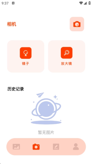 2、在拍照的页面中主要提供了相机功能,同时拥有镜子和放大镜等功能;
