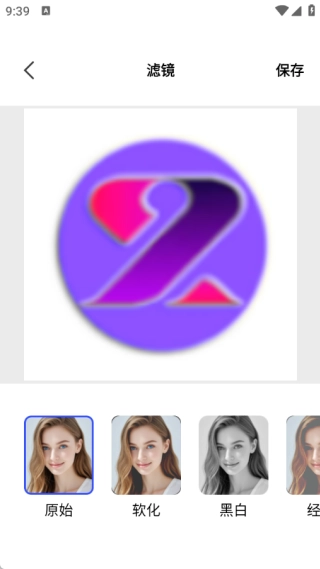 3、在编辑页面中可以进行添加滤镜,同时提供画笔、贴纸、拼图及背景等编辑操作;
