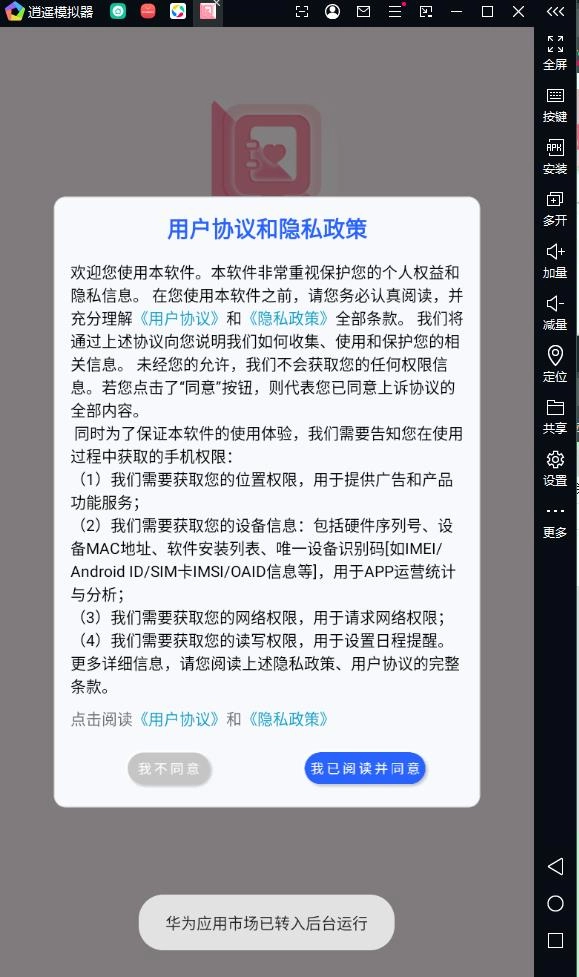 1、安装后打开软件,提示同意与否,点击同意进入注册界面;