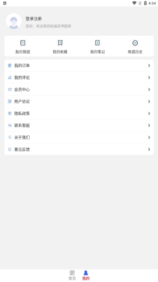 4、进入我的,提供错题以及收藏和笔记等功能,还正常练题历史等功能。