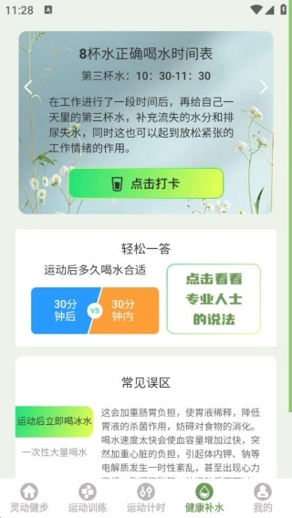 3、除了记录运动数据外,还会给出专业的饮食建议、喝水时间规划以及运动误区的科普内容,助力用户在运动过程中避开潜在风险,逐步养成健康的生活习惯。