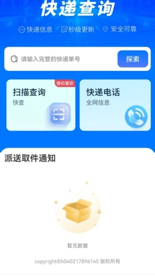 安装软件并打开进入后,输入快递单号即可查询快递信息,同时支持扫描查询和快递电话查看功能。