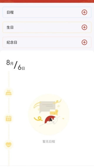 3、点击日程,可添加个人日程信息,也能添加生日、纪念日等内容,系统会及时发送提醒。