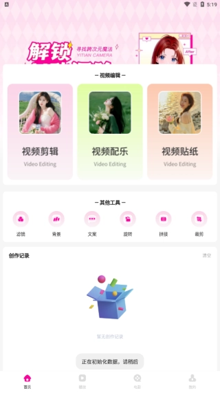 首页推送的剪辑功能十分丰富,你可以自由开启视频配乐功能,还能随心挑选各种视频贴纸。