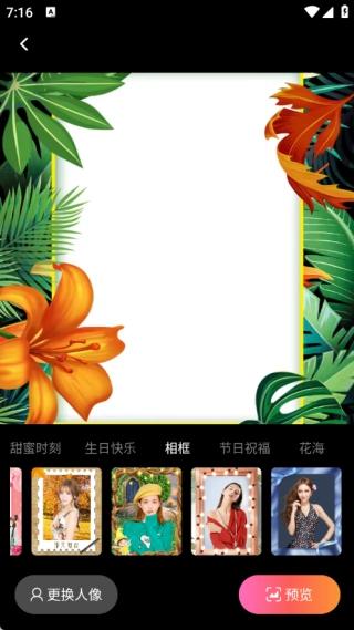2、挑选精致的相框,接着上传一张包含人像的图片,之后选择与之匹配的相框就可以了;