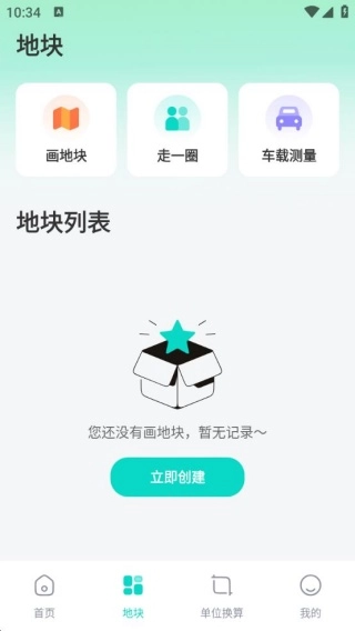 2、点击地块后,可使用画地块、绕圈走、车载测量等功能,这些功能均支持免费操作;地块列表也能立即创建。