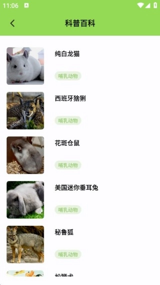 2、科普百科知识界面,涵盖了各类可爱小动物的百科知识,便于用户直接阅读和了解。
