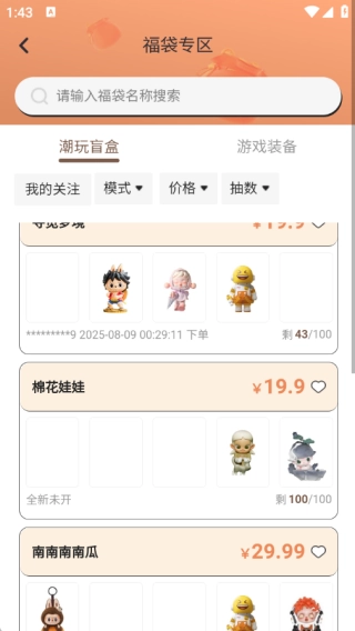 2、在福袋专区里,用户能够了解到各类不同的福袋资源,还可以在线挑选不同的潮玩盲盒商品。
