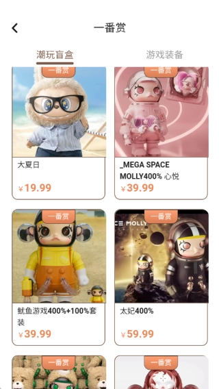 首页设有福袋、一番赏、无限赏等特色版块,同时也能让你了解到各种各样的潮玩。