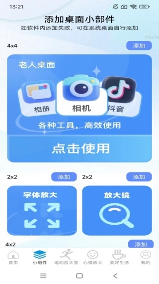 3、各类小组件素材这里都有,另外还能开启相册和桌面的放大功能等。
