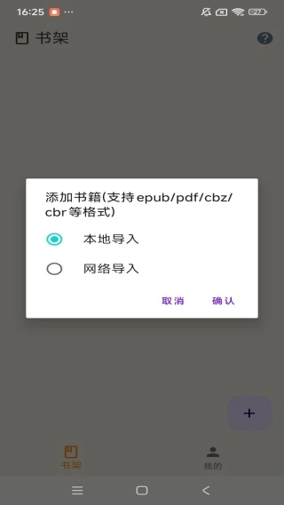 3、添加导入书籍,支持本地手机以及网络导入等。