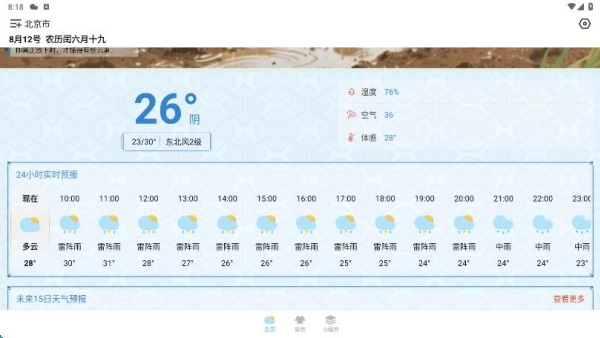 2、直接在主页浏览,就能更直观地了解本地今日的所有气象数据,温度、空气质量等信息一应俱全。