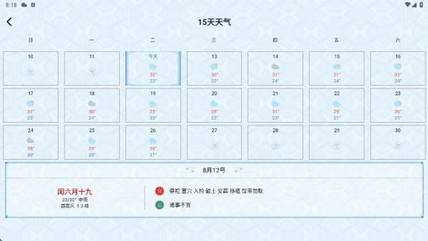 3、点击主页的“查看更多”功能,就能获取未来半个月的气象信息。