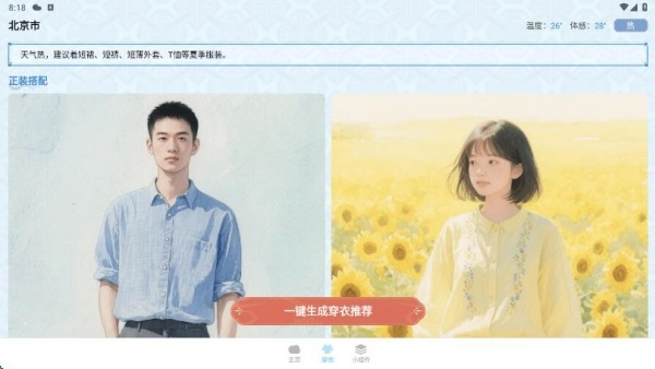 4、在穿衣页面,系统会结合天气变化,为我们推荐不同的穿衣搭配模板。