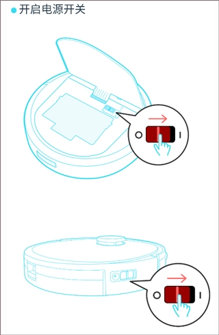 2、机器人电源开启操作:打开电源开关,若开启正确,机器人会播放开机音乐。