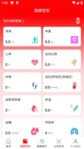3、在下方导航栏的健康管家板块中,你能够记录个人的身体健康数据,以便随时关注自身的身体状况。