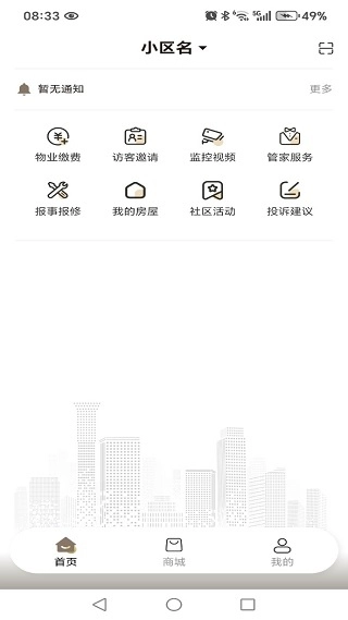 2、首页呈现了物业缴费、访客登记、监控视频、在线报修等功能,使我们的小区生活更为便捷舒适。