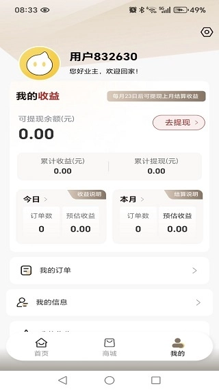 4、“我的”页面里展示着个人信息,以及购物订单之类的数据。