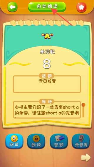 4、点击书籍进入阅读界面后,找到并点击【自动朗读】按钮就可以了。