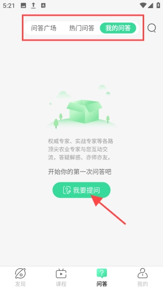 4、打开【问答】界面,查看热门问答解惑或在【我的问答】页面在线提问。