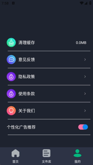 4、在我的页面中可以进行清理缓存,同时可以了解关于软件的信息。