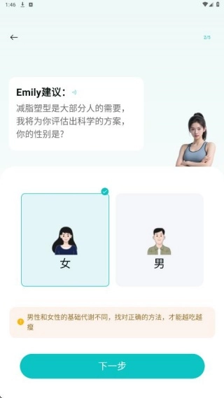 2、填写你的性别、体重、身高、年龄等信息,即可生成个人档案。