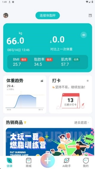 3、智能生成减脂报告,详细记录用户的减脂历程,清晰展示各项数据的变化曲线,让减脂效果一目了然。