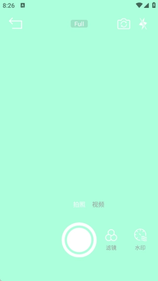 4、在拍照界面,用户既能拍照或录制视频,也可以选择添加水印或切换不同的滤镜效果。