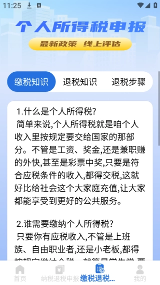 个人退缴纳税助手是一款面向个人用户的智能税务管理应用,能协助用户便捷完成退税、缴税等各类税务相关操作。这款App秉持以用户为核心的理念,提供全面的税务服务,助力用户轻松了解自身税务情况,简化复杂的税务流程,从而提高个人财务管理的效率,优化使用体验。