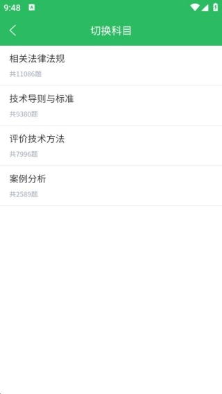 2、还能进行科目切换,可选择相关法律法规、技术导则与标准、评价技术方法等内容。