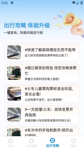 2、整合高铁违禁品清单、改签流程等高频需求攻略,助力用户规避出行风险,应对突发问题。