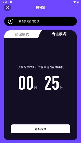 2. 点击【自习室】选项,就能开启学习计时功能;计时进行时,娱乐相关功能将被限制使用,这样可以协助使用者提升学习时的专注程度。