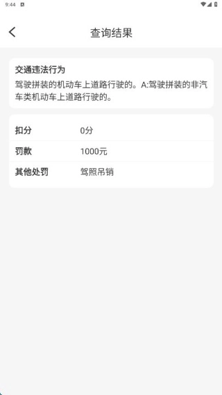 3、通过违章查询页面,我们能够获取车辆违章处罚标准,并且可以快速得到查询结果。