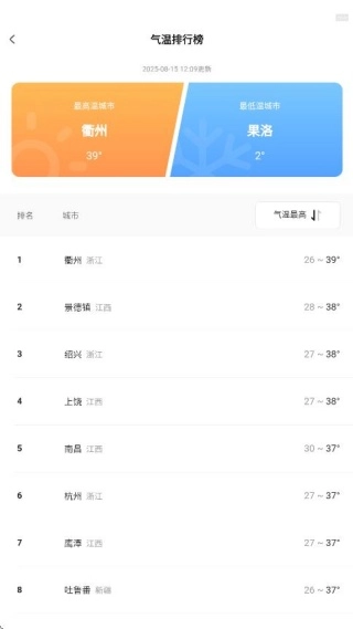 2、城市气温排行榜每日实时更新,数据精准可靠,能让全国乃至全球城市的气温情况一目了然地呈现出来。