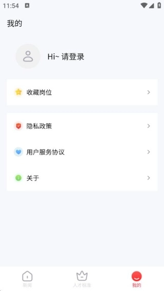 3、进入我的界面后,可一键取消岗位收藏,也能查看隐私政策、用户服务协议等相关内容。