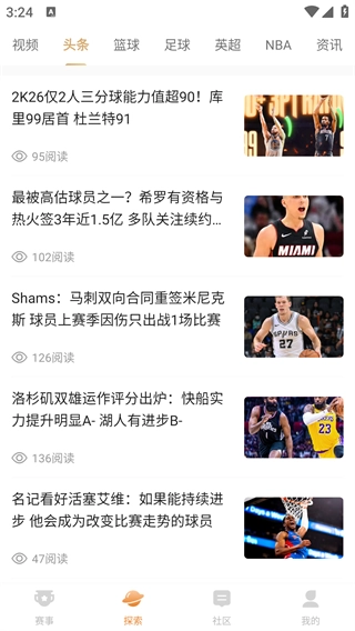 3、头条板块汇聚了各类最新资讯,涵盖比赛动态、交易信息等内容。