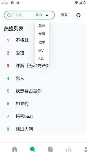 1、点击搜索功能,输入想听的歌曲名称或歌手名字,就能快速找到相关内容。