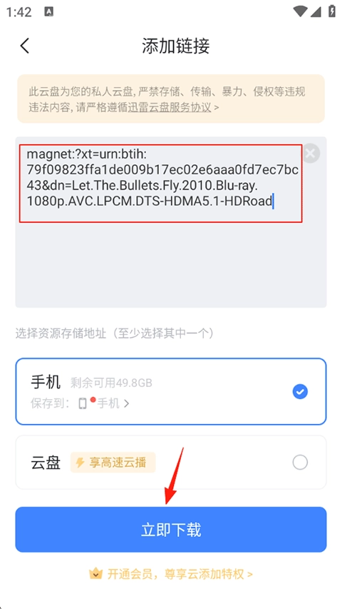 2、粘贴您需要进行资源的磁力链接,点击立即;