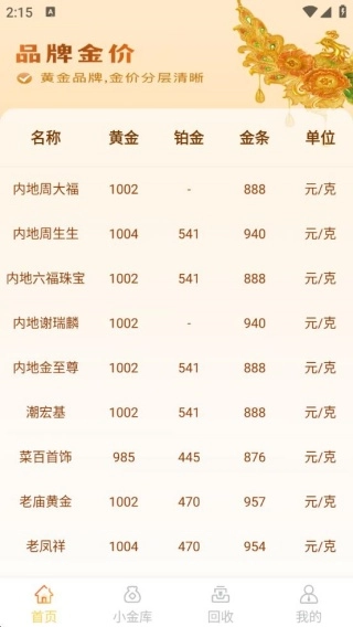1、进入到平台首页,有品牌金价详细呈现,方便大家直接进行查询的操作。