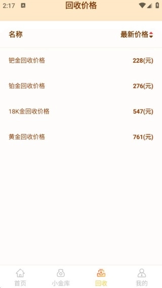 3、清晰呈现各类黄金回收价格,涵盖钯金、铂金、18K 金、黄金等品类,用户可实时掌握回收市场动态