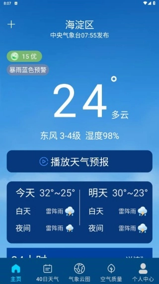 1、安装后进入主页,我们能知晓本地天气信息,还能同步添加城市。