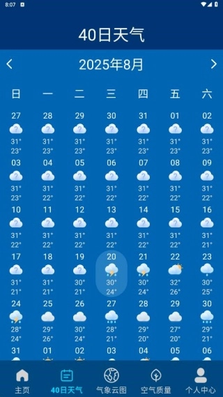 2、在40日日天气页面,则预测了本地未来一个月气象结果。