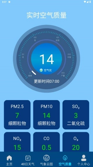4、在空气质量页面,我们能知晓本地空气检测结果,快速查看参数。